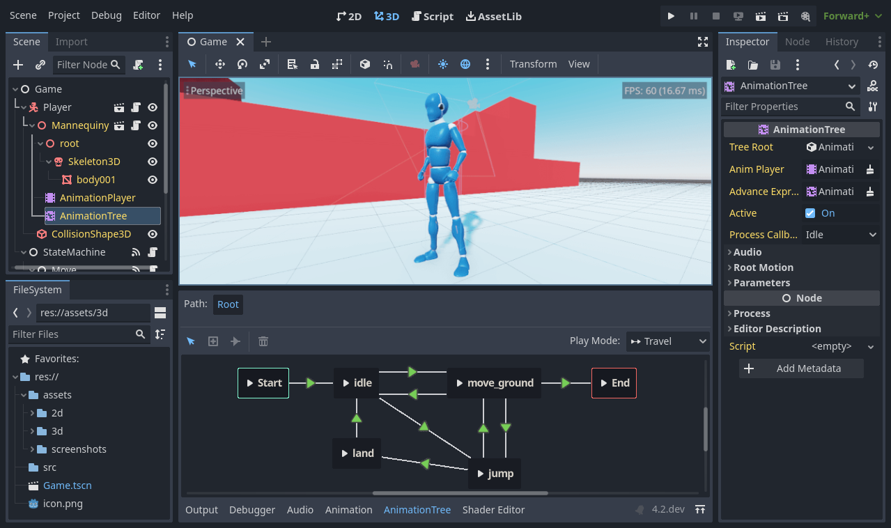 Bir karakter sahnesinin node yapısı — her node’un farklı bir sorumluluğu var