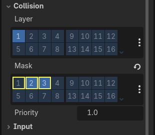 Player: Layer = player, Mask = enemies + world