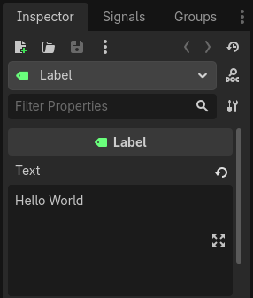 Şimdi Label’ın Text özelliğini değiştireceğiz. Sağdaki Inspector doku‘na git, Text alanını bulun ve içine Hello World yazın.
