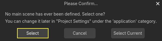 Butona ilk kez tıkladığınızda ana sahneyi seçmenizi isteyen bir pencere açılır: