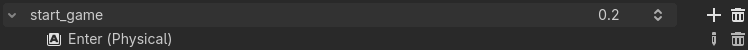 start_gameadında yeni bir eylem oluşturup Enter tuşunu atayın. ArdındanStartButtonnode’unun Inspector panelindeki Shortcut özelliğine bu eylemi bağlayın.