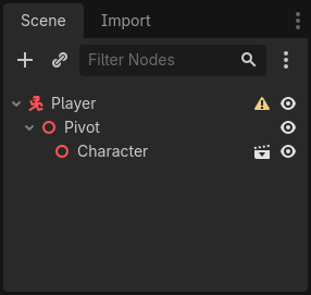 Player > Pivot > Character (player.glb instance’ı)